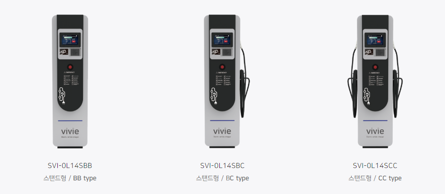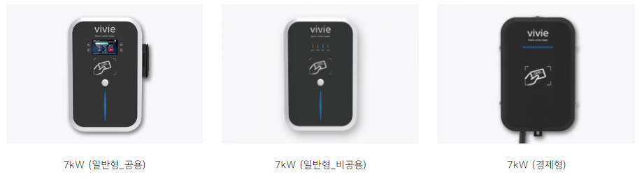 전기차 충전기 제품 중 하나인 비비(VIVIE)는 벽부형 충전기부터 급속, 완속 충전기, 교통약자형 충전기 등 다양한 전기차 충전기 라인업을 보유하고 있습니다.
